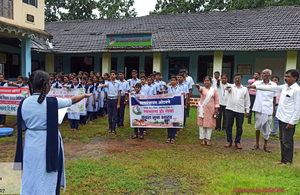 गावातील विद्यार्थ्यांसोबत कचरा मूक्त भारत उपक्रम राबविला